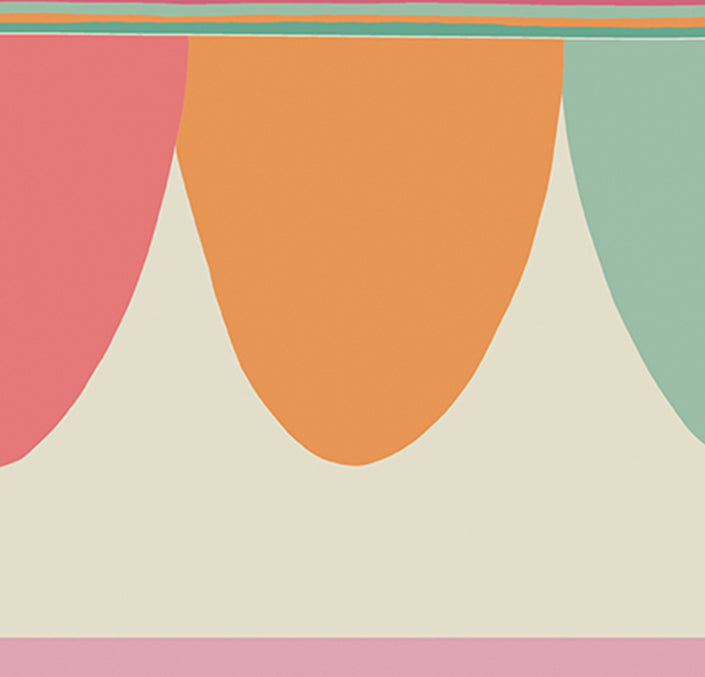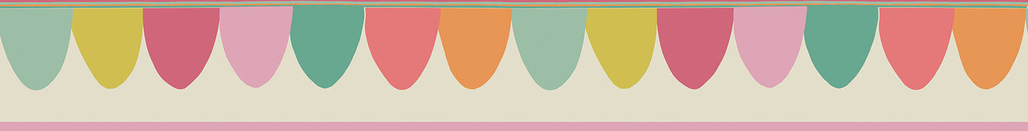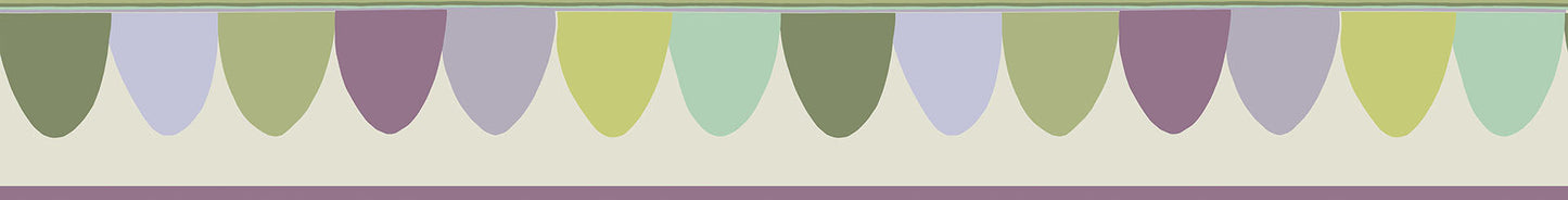 Rappelant les fanions du carnavall, cette bordure fine a été conçue pour ajouter une touche de fantaisie à un intérieur. Proposé dans des tons éclatants et exubérants : Olive et Purple, ainsi que dans des pastels plus doux et crayeux, Scaramouche peut s’appliquer partout dans une pièce.